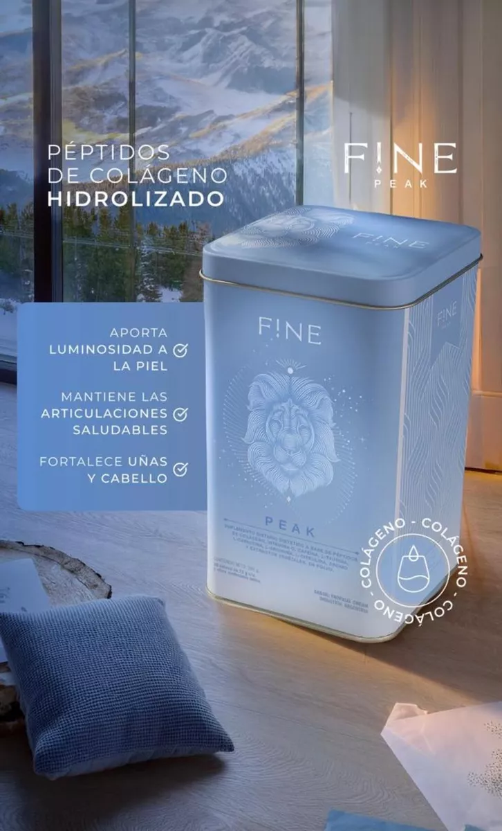Fine Power Colágeno es un suplemento en polvo diseñado para potenciar tu belleza desde adentro hacia afuera. Con una fórmula rica en colágeno hidrolizado, vitamina C, coenzima Q10 y vitamina D, este producto se convierte en un aliado esencial para mantener la salud de tu piel, cabello y uñas. Su presentación en lata facilita su almacenamiento y uso diario, permitiéndote disfrutar de sus beneficios de manera práctica.